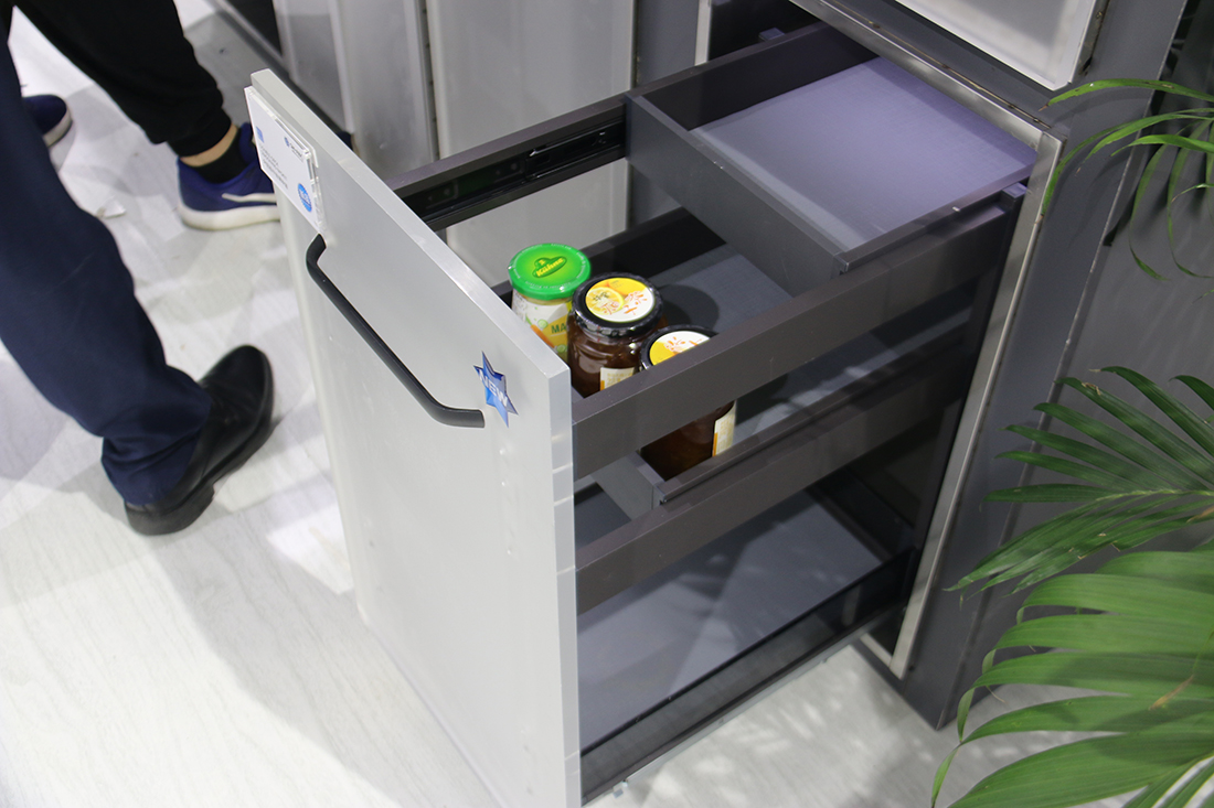 此次展會強勢吸睛的,當屬星徽的上翻系統,它具有雙緩沖功能,門板可打開到60°±15°以上角度任意懸停階段,且免工具快速拆卸,輕松開啟、輕柔閉合,高處物品輕松拿放,可謂是高度舒適的操作體驗!