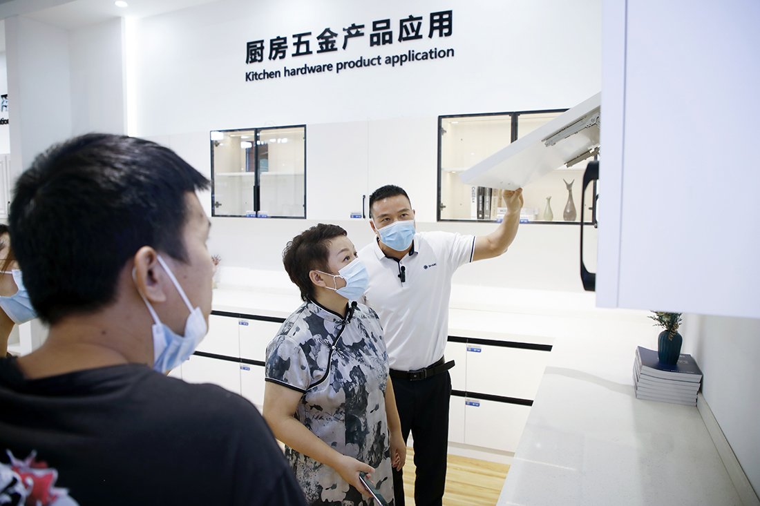 在廚房功能五金區域,全鋁高端拉籃系列選用上等鋁合金材質,防水耐臟,堅固耐刮,創意升級,靈動點綴黑晶鋼化玻璃,輕松解決廚房收納難題。
