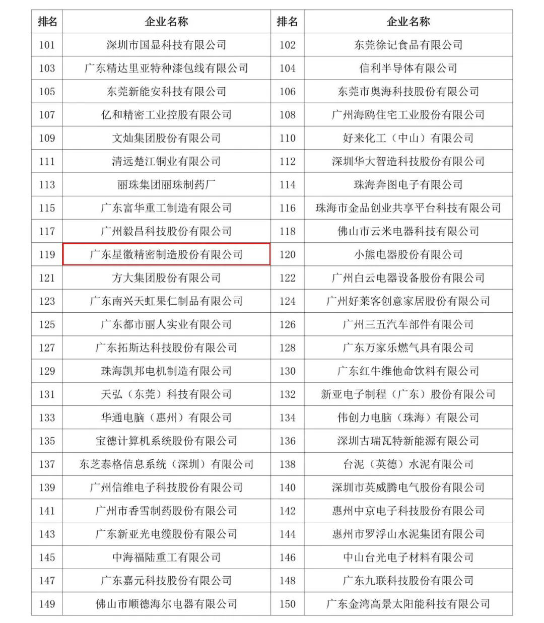 憑借強勁的綜合實力和品牌影響力,星徽精密今年再次入圍“廣東省制造業500強”,星徽精密能位列500強榜單,是社會各界對星徽精密綜合實力的認可和肯定,也是星徽精密大力推動精益生產,通過智能制造賦能,提高生產效率的結果。