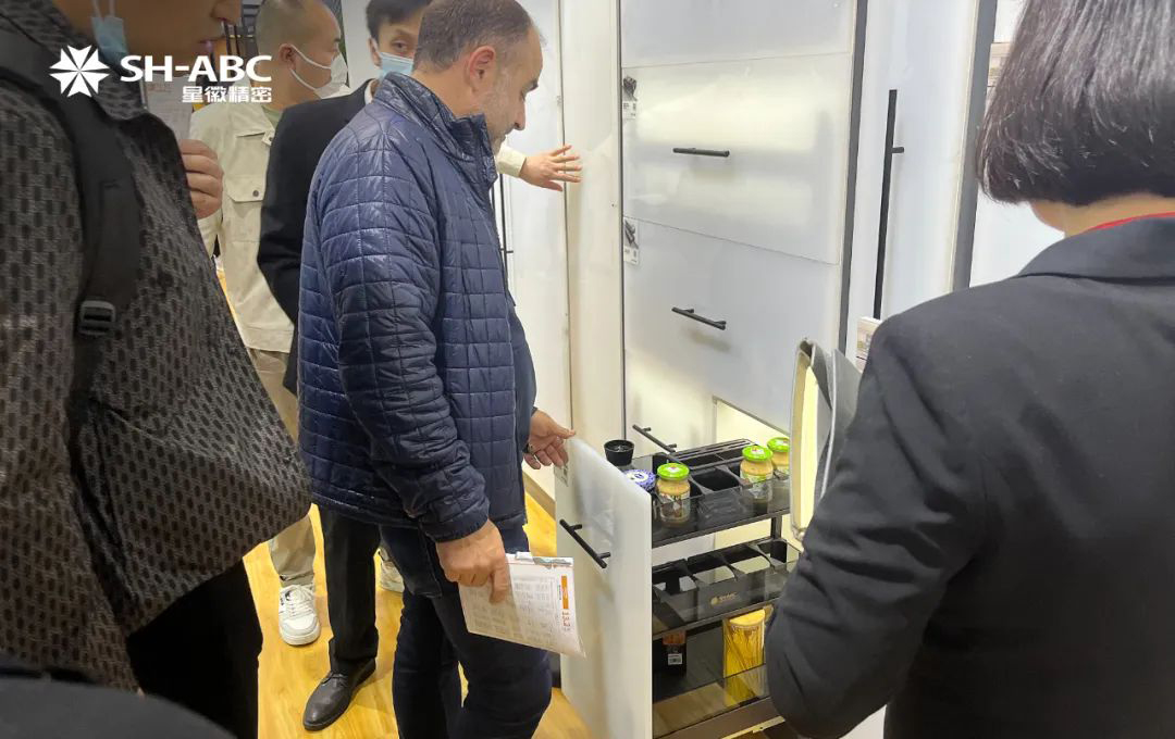 星徽精密在此次展位形象和產品發布上下足了功夫,充滿無限創意和專業化的設計讓星徽精密展區在人氣和體驗上更勝一籌。展廳圍繞歐式廚柜五金、美式櫥柜五金、浴室柜五金、衣帽間以及廚房功能五金幾大場景,根據產品分類進行搭配,特色鮮明,主題突出,展區陳列設計簡潔,讓參觀客戶體驗到高端五金在家居生活中的實際使用。
