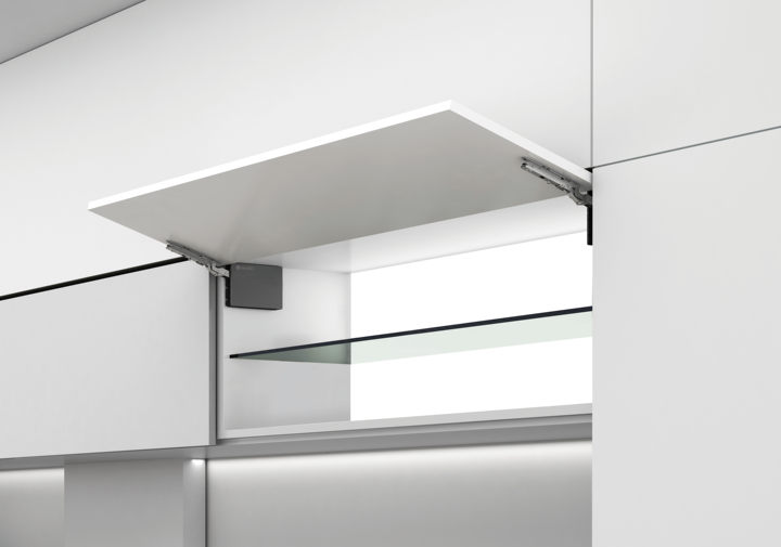 HK上翻支撐門系統具有雙緩沖功能,門板打開采用精密懸停技術,可將門體上翻至隨意位置懸停,讓高處物品輕松取放。