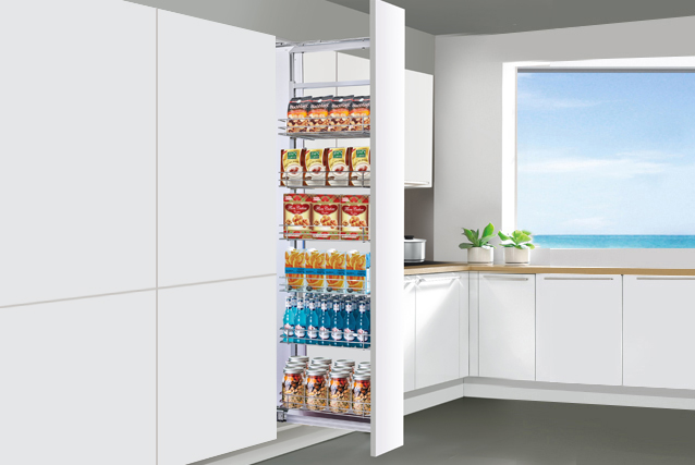 → 設計:融合超強承重大型阻尼全拉出滑軌,上下軌同步阻尼設計,推拉順滑、平穩、靜謐,籃子安裝高度可靈活調節,滿足不同大小高度物品的存放。