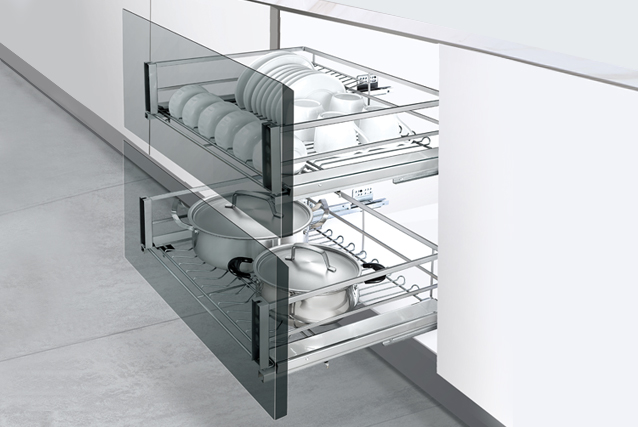 → 設計:標配星徽阻尼滑軌,開合順滑流暢、靜音自動回位; 拉籃采用快裝門板設計,安裝簡易;配置接水盤,清潔更方便。