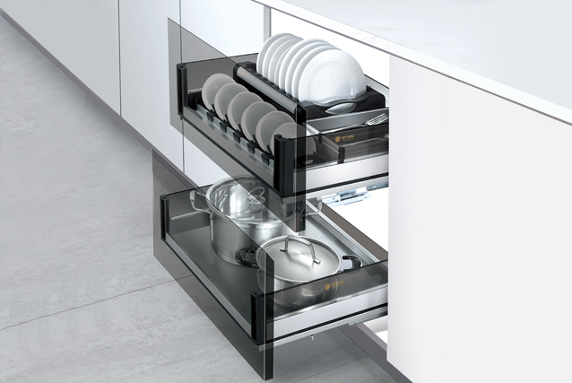 → 設計:標配星徽阻尼滑軌,開合順滑流暢、靜音自動回位; 科學細分3大區域,設有雙餐具架、百變置碟架和百變置碗架,分區自由組合,滿足個性化收納習慣。