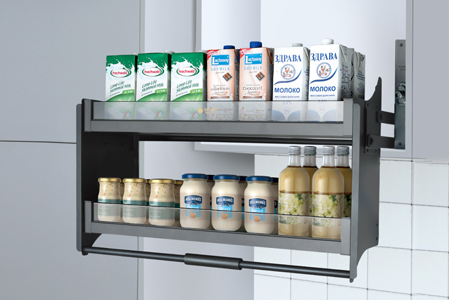 → 功能:可應用于吊柜中,將吊柜巧妙轉化為活動空間,人性化的設計,4檔力度調節功能,可根據存放物品的重量調節拉力的大小。